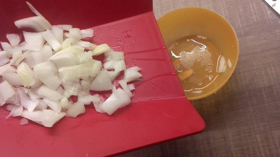 Wystarczy posiekaną już cebulę przelać wrzątkiem lub w nim chwilę zanurzyć